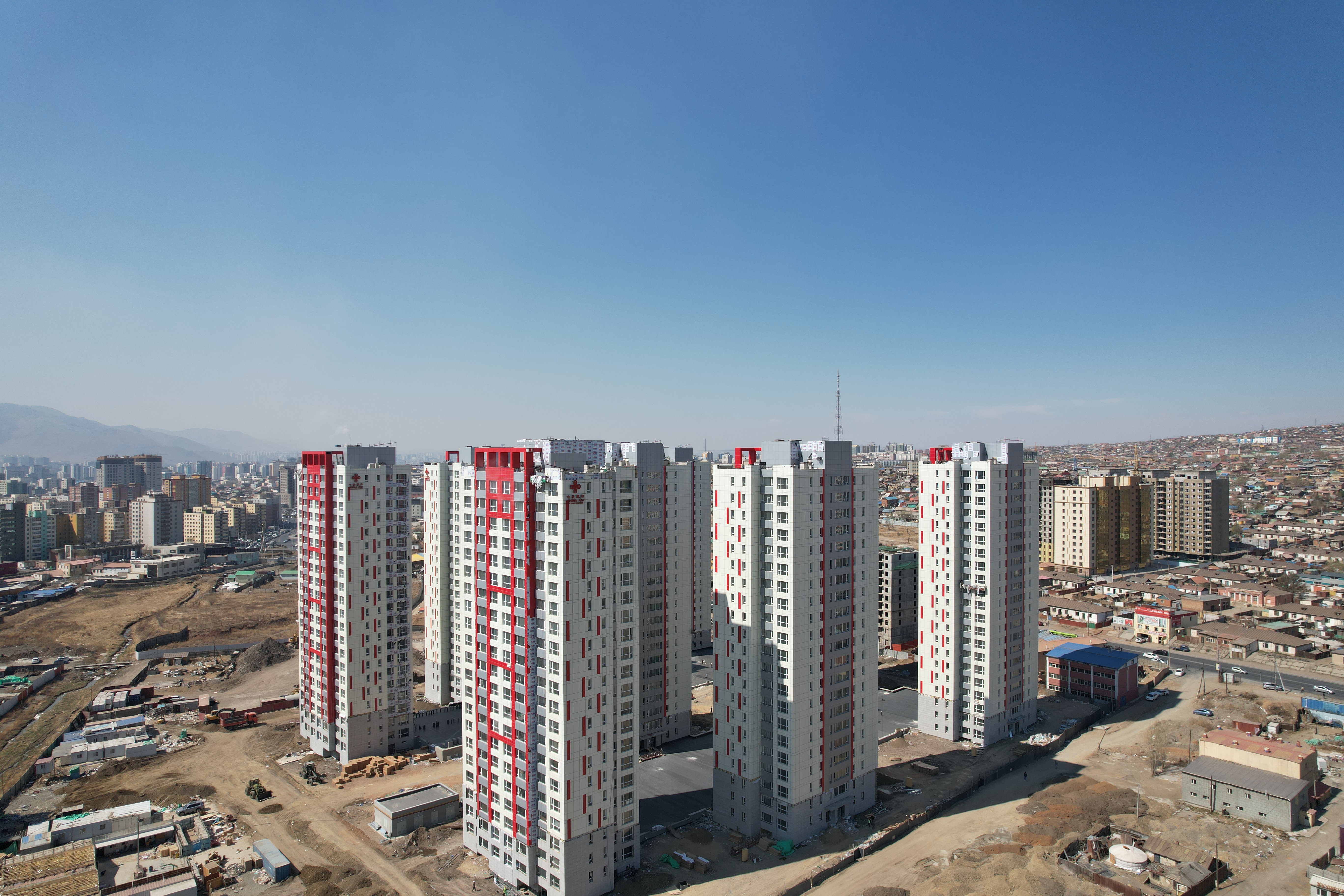 走進蒙古國棚戶區(qū)改造項目,一棟棟融合著蒙古元素和中國紅設計的住宅樓高聳挺拔,甚是宏偉而亮麗。進入6月份,蒙古國已進入“燒烤”模式,項目施工現(xiàn)場車輛來回穿梭,升降機上下運輸,施工現(xiàn)場依然火熱推進。百余名項目建設者面對施工程序復雜、立體交叉工序多、施工質量要求高等難點。積極推行國內先進的質量管理經驗,推行策劃先行,樣板引路、“三檢制”制度,在保證工程安全質量的前提下,采取“平行施工+流水作業(yè)”等施工方法,開啟"搶工大干"沖刺模式,管理團隊錨定目標不松懈,設置關鍵節(jié)點倒排工期,放棄節(jié)假日加快施工進度,于近日順利完成精裝修施工任務。蒙古棚戶區(qū)改造項目是中共建“一帶一路”框架下務實合作的重要成果之一此次精裝修任務的順利完成,為項目按節(jié)點目標實現(xiàn)竣工驗收目標創(chuàng)造了有利條件。