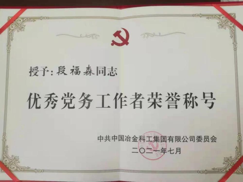 通過不斷地積累與總結,提煉以往工作經(jīng)驗,不斷加強自身思想建設、提升工作能力,段福森同志被授予“中冶集團安全生產(chǎn)先進個人”“中冶集團優(yōu)秀黨務工作者”“包頭市優(yōu)秀黨務工作者”“中國二冶優(yōu)秀黨務工作者”“中國二冶先進生產(chǎn)工作者”等榮譽稱號。