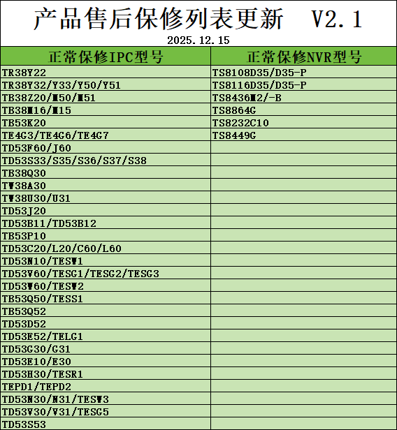 售后保修型號